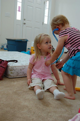 We hosted totschool this week. Alaina & Izzy had a blast playing doctor. They were very gentle with eachother, took turns well and really enjoyed it!